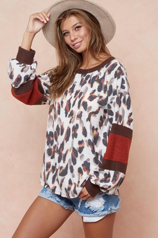 This top screams fall - I love the rust coloring and the leopard print.  Fits true to size.