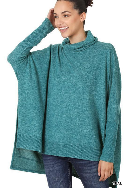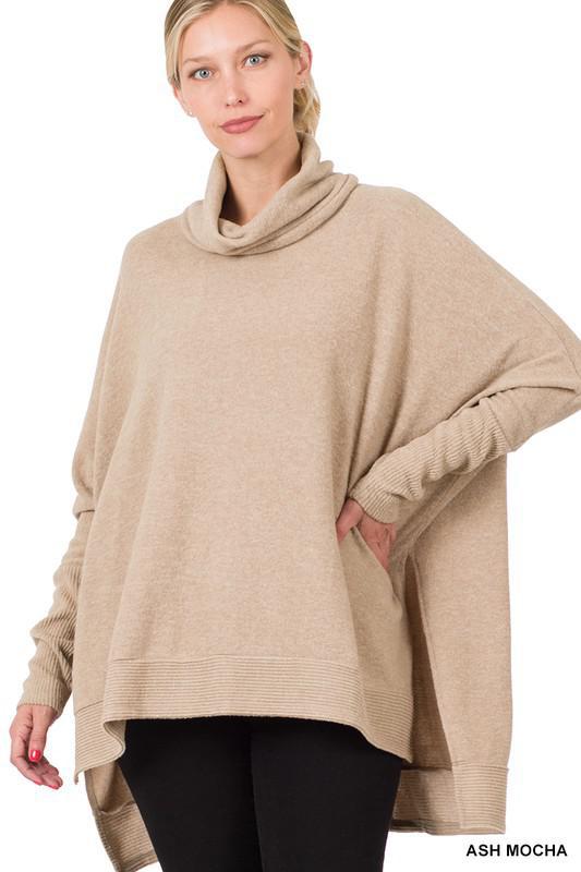 Brushed Melange Cowl Neck Poncho